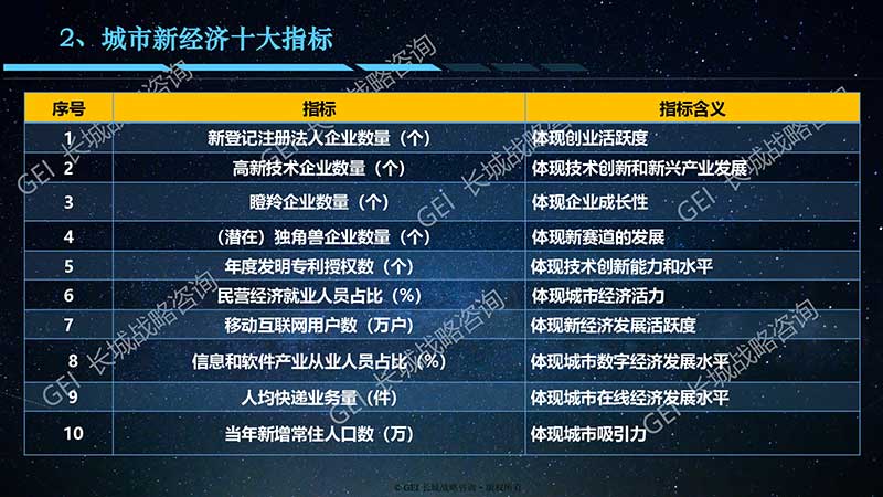 中国城市新经济十大指标